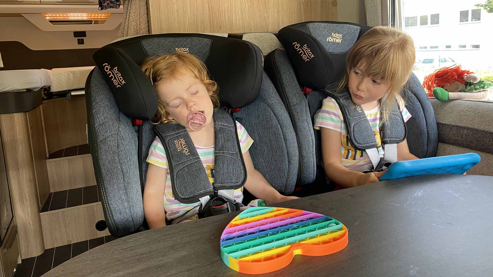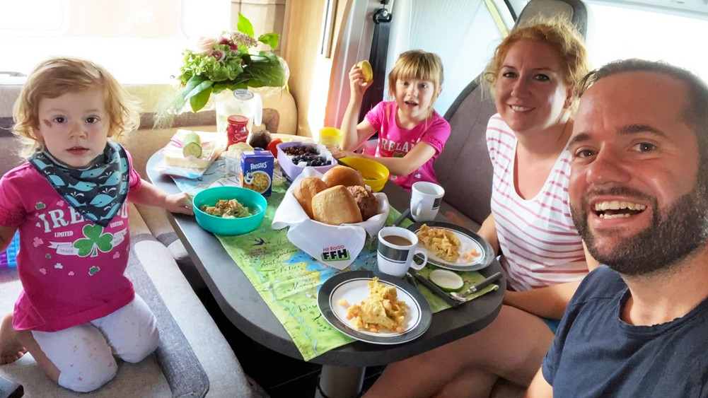 Huch, da ist ja noch ein Wikinger-Kostüm im Camper. Das müssen wir natürlich nutzen - zum Beispiel um Papa Matthias damit Brötchen holen gehen zu schicken.
