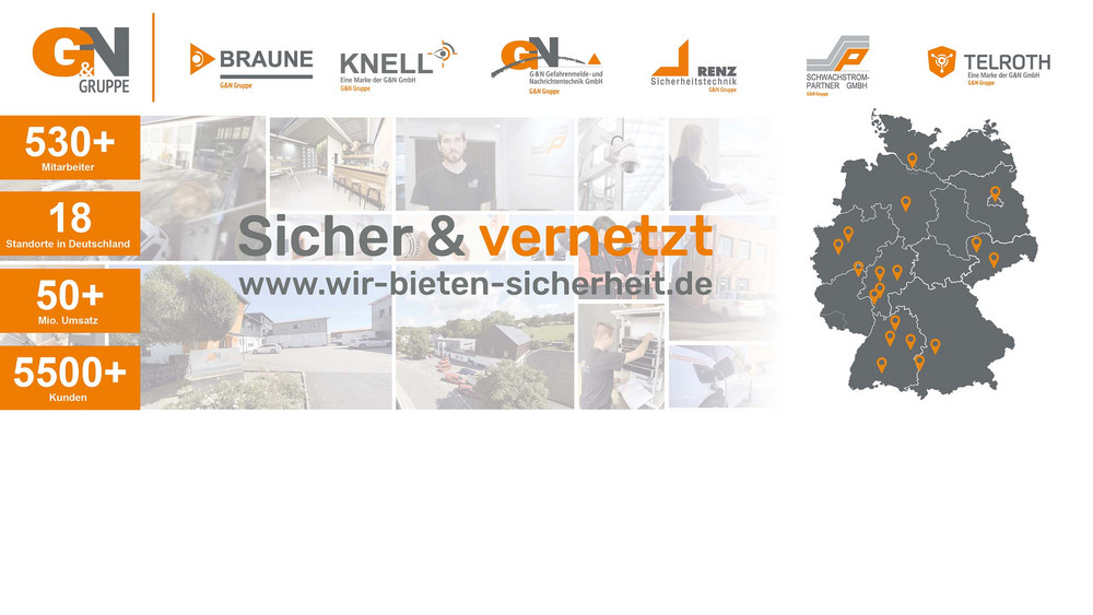 Die G&N Gefahrenmelde- und Nachrichtentechnik GmbH mit Sitz im osthessischen Wartenberg hat einen langen Namen. Der beschreibt aber schon ganz gut, was hier passiert: Planung, Installation und Wartung sicherheitstechnischer Anlagen für zum Beispiel Einbruch- oder Brandschutz. Seit ihrer Gründung vor fast 30 Jahren hat sich die Firma einen Namen in der Branche gemacht, indem sie herstellerunabhängig agiert. Das Unternehmen ist als Teil der G&N Gruppe deutschlandweit an insgesamt 18 Standorten vertreten und beschäftigt rund 500 Mitarbeiter.