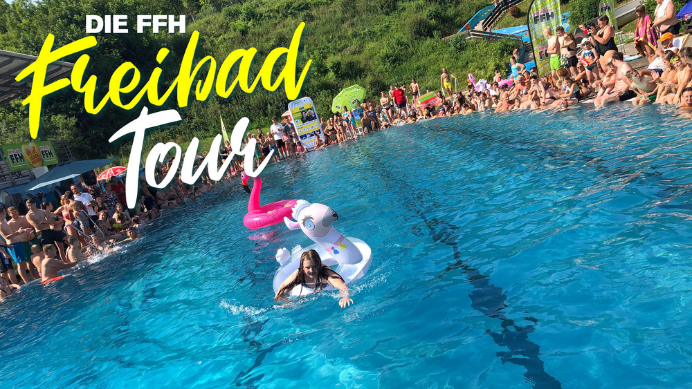 In den Sommerferien haben wir die hessischen Freibäder auf den Kopf gestellt. Zusammen mit euch gab's die große Party mit FFH-Moderatoren, Musik, Spaß, Action und dem verrückten Wasser-Rennen auf aufblasbaren Einhörnern, Lamas und Flamingos.