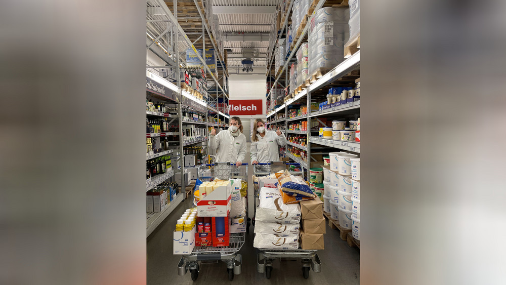 Wie versprochen, haben wir die ehrenvolle Aufgabe der Lebensmittel-Organisation übernommen und waren fleißig im Großhandelsmarkt einkaufen. In insgesamt acht vollen Einkaufswagen sind gut haltbare Lebensmittel wie Mehl, Zucker, Nudeln und Konserven gelandet – Nahrung die den Grundbedarf jedes Menschen in Deutschland deckt.