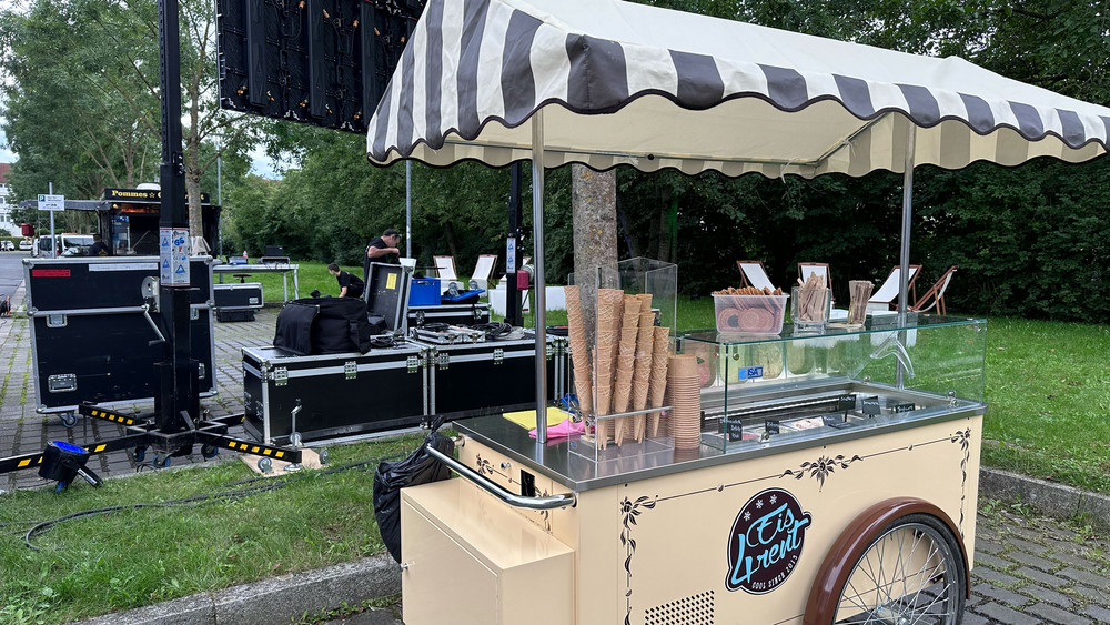 Snickers, Kinderschokolade, Kiwi...Mmmmmhhh, ein Traum! Luna von Eis4Rent ist heute Abend mit ihrem Eiswagen dabei und hat viele leckere Sorten im Wagen.