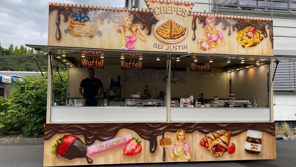 Nicht nur Würstchen gibt's heute Abend, sondern auch lecker Crêpes von Adrian, Sabine und Justin vom Crêpes-Partyservice "Bei Justin".
