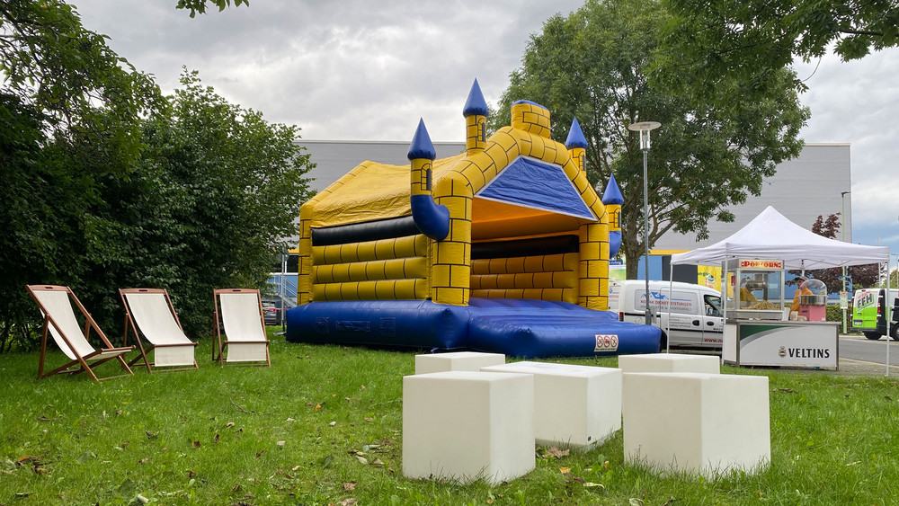 Am Ende hatten wir mehr als genug und mehr als wir erwartet haben: Essen, Trinken, einen DJ, eine Sängerin, eine Trommler-Gruppe, eine Seifenblasenkünstlerin, eine große LED-Wand, und sogar eine XXL-Hüpfburg. Und die Challenge haben wir natürlich bestanden!