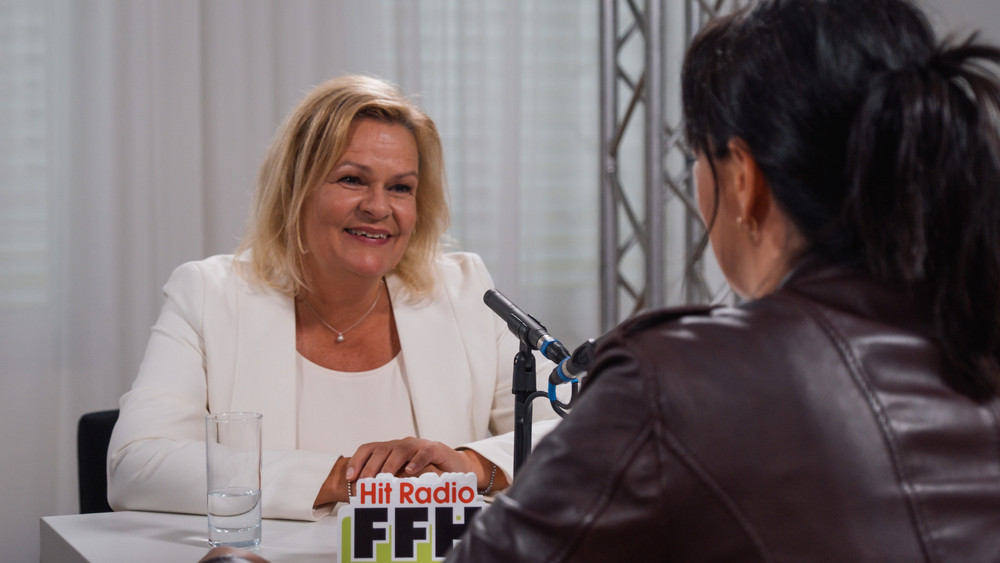 SPD-Kandidatin Nancy Faeser im Gespräch mit Hörerin Cornelia.