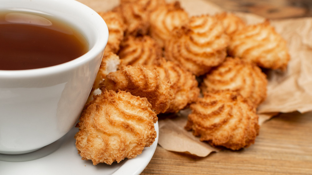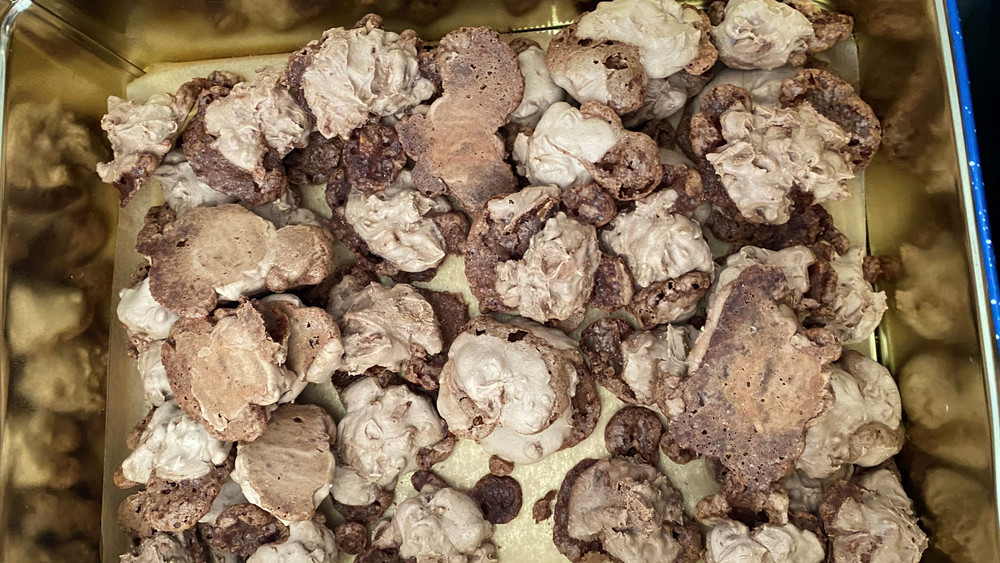 - Mit zwei Teelöffeln setzt ihr kleine Häufchen auf ein mit Backpapier ausgelegtes Backblech und backt die Witwenküsse dann bei 150 Grad für 15 Minuten