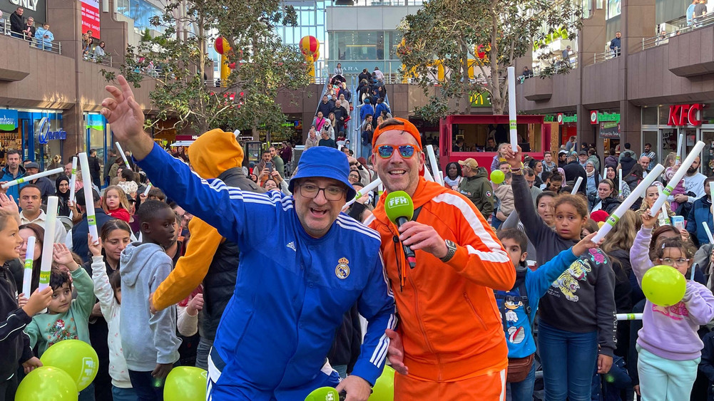 Im „echten Leben“ heißen sie Dirk Haberkorn und Boris Meinzer – ihr kennt sie aus der FFH-Comedy und als FFH-Dummfrager. Jetzt haben die beiden aber eine Mission: Party für Kids! Und dann schmeißen sie sich in richtig coole Outfits und es heißt ‚Bühne frei‘ für Ikke Hüpfburg und Ricky Brause.