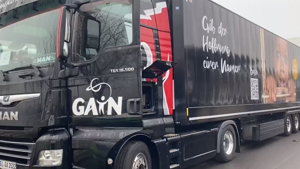 Vier schwarze Lastwagen von Gain werden am heutigen Mittwoch starten und von Polen aus weiter in die Ukraine fahren. Sie wollen in die westukrainische Großstadt Riwne, auf halber Strecke nach Kiew gelegen. Die Ladungen von insgesamt mehr als 60 Tonnen enthalten Hygienepakete, Lebensmittel wie Babynahrung, Zucker, Nudeln, Reis, Milch und Tee, Matratzen, Kissen, Laken und Decken. Hier erfahren Sie mehr über die Hilfsorganisation Gain.