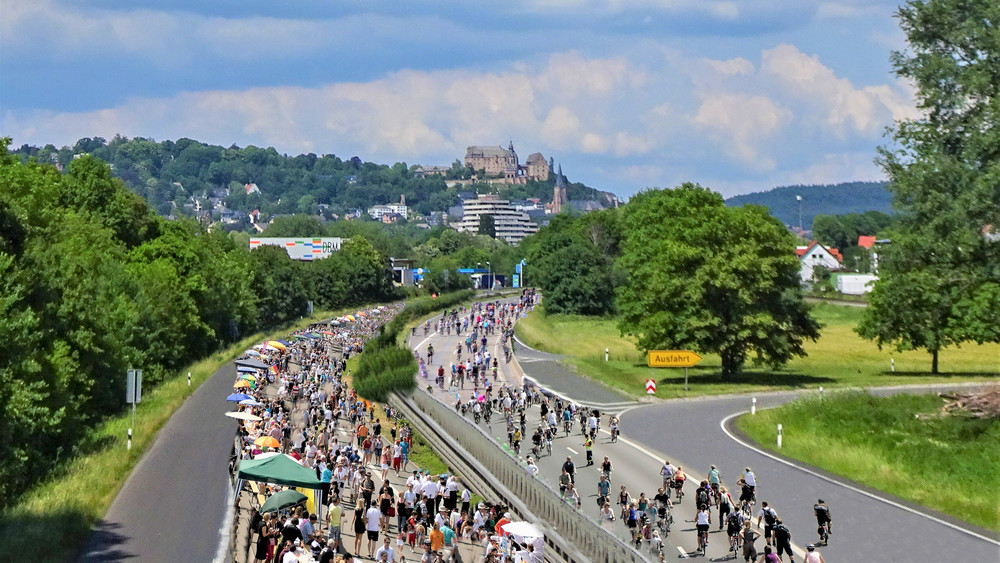 Es ist eins der absoluten Highlights von Marburg800: das große Mitmach-Event "Tischlein deck dich". Dafür wird an Pfingstsonntag die Bundesstraße 3 gesperrt. Statt Autos beleben an diesem Tag die Marburger die Straße. An 800 Bierzeltgarnituren, quasi eine riesige Geburtstagstafel, kommen alle zusammen: Menschen aus Vereinen und Nachbarschaft, Firmen und Freundeskreisen.