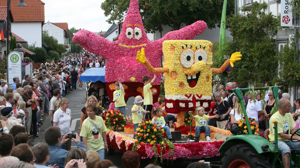 Drei Tage lang, vom 19.-21. Juli dreht sich in dem Bad Nauheimer Ortsteil alles um die stachelige Schöne. Es gibt einen Rosenmarkt, eine Rosenschau, Feste und den wunderschönen Rosenkorse am Sonntag. Dann ziehen mit hundertausenden Rosen geschmückte Prunkwagen durch den Ort.