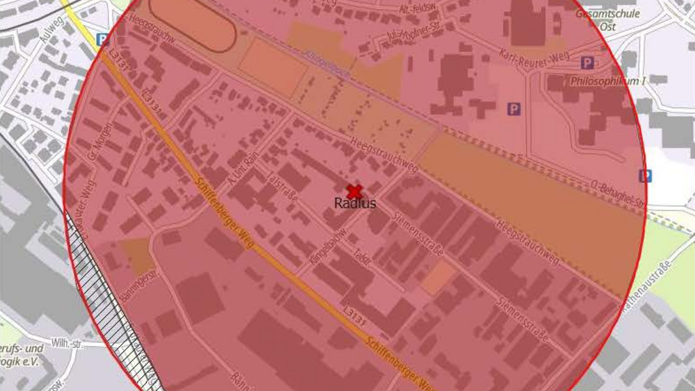 In einem Radius von 500 Metern um die Fundstelle musste evakuiert werden. In diesem lagen das Uni-Gebiet Philosophikum einschließlich Mensa sowie auch der Einzelhandel rechts und links des Schiffenberger Weges.