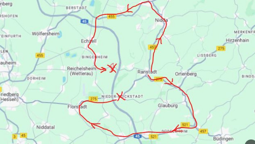 Der Wetteraukreis empfiehlt in den nächsten Wochen eine Umleitung, die von Ranstadt über Ortenberg, Büdingen, Altenstadt und Florstadt nach Nieder-Mockstadt führt und über 40 Minuten mit dem Auto dauert. Kopfschütteln bei den Anwohnern. Die kritisieren, dass gerade ältere Ranstädter, die in Nieder-Mockstadt einen Arztbesuch erledigen wollten, auf zu weite Wege geschickt werden.