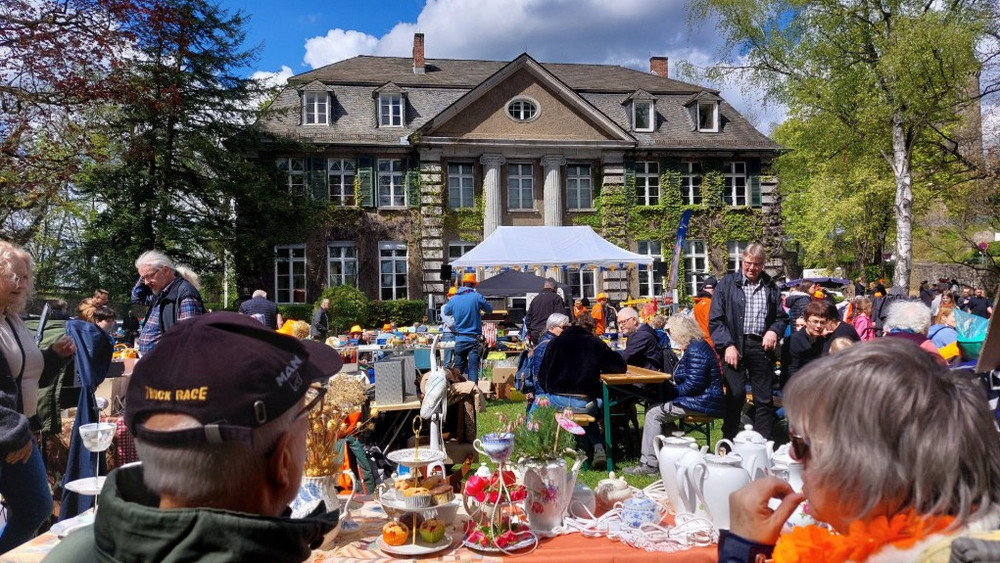 Der Königstag beginnt um 11.00 Uhr mit einem Flohmarkt im Park der Villa Grün. Hier darf jeder mitmachen und von morgens bis abends einen Stand aufbauen, ob Bürger, Verein oder Händler.