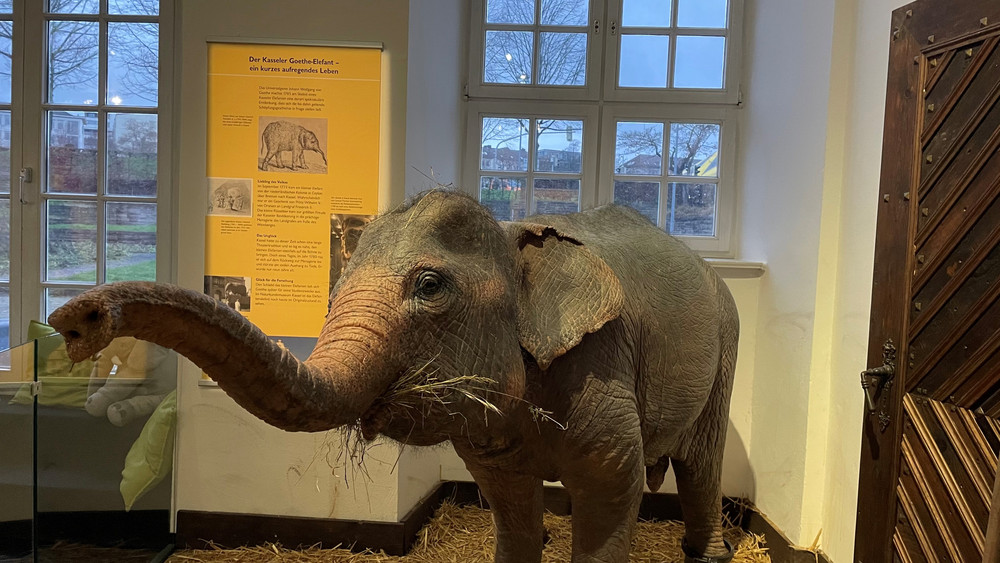 Besonders für die Geschichte Kassels ist der sogenannte Goethe-Elefant. Dieser hat vor über 250 Jahren für acht Jahre in Kassel gelebt. Dort trat er im Theater und auf Umzügen auf, bis er unglücklich stürzte und starb. Später untersuchte der Universalgelehrte Goethe den gebrochenen Schädel. "Das spielt eine wichtige Rolle in der Naturgeschichte", sagt Füldner. Deshalb sei der Schädel in der Ausstellung auch zu sehen.