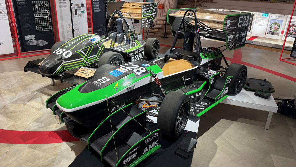 Mit Renn-Simulator in Kassel - Studenten stellen ihre E-Rennwagen aus