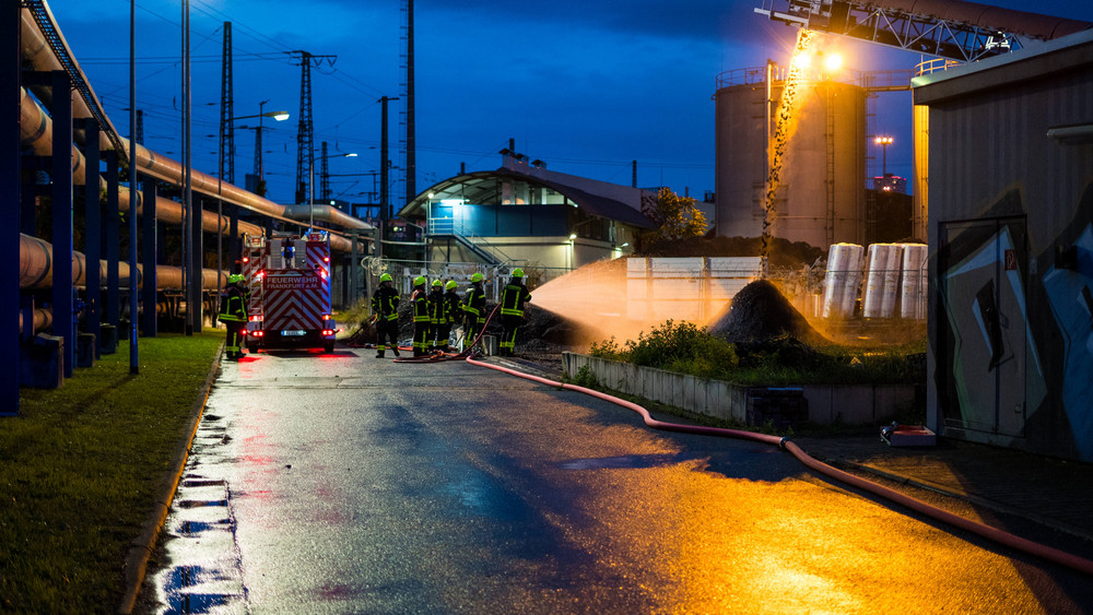 In einem Kohlesilo eines Frankfurter Kraftwerks ist ein Feuer ausgebrochen. Die Feuerwehr hat es mit schwierigen Bedingungen zu tun, der Einsatz könnte Tage dauern.