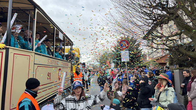 Kleine Kinder als Wilde Kerle verkleidet, Bienen, Rennfahrerinnen - schon die Zuschauerinnen und Zuschauer können sich sehen lassen. Der Umzug bietet viele Musikgruppen und Umzugswagen - durchaus auch mit politischer Kritik. Einer der großen Hingucker ist der Wagen des Düsseldorfer Karnevalisten Jacques Tilly. Wegen seiner Putin-Darstellungen läuft in Russland ein Verfahren gegen ihn.