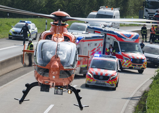 Bei einem Unfall auf der A661 trifft ein verlorener Autoreifen zwei Mitarbeiter der Autobahnmeisterei. Einer wird schwer verletzt.