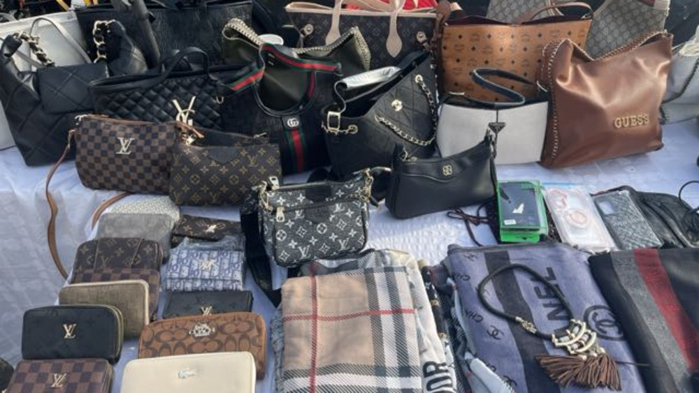 An einem der Stände wurden sie fündig: Dort lagen offenbar täuschend echte Plagiate höherpreisiger Designerprodukte zum Verkauf aus.