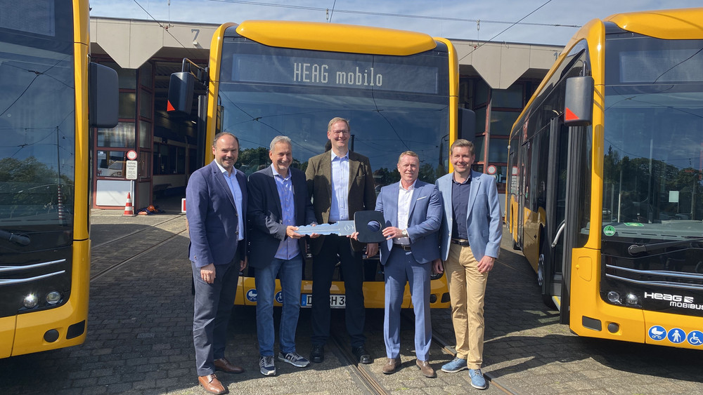 Das Darmstädter Verkehrsunternehmen HEAG mobilo erweitert seine Flotte mit fünf neuen Elektrobussen. Die Mercedes Benz eCitaro wurden jetzt übergeben. Damit sind nun alle Standardbusse des Unternehmens rein elektrisch.