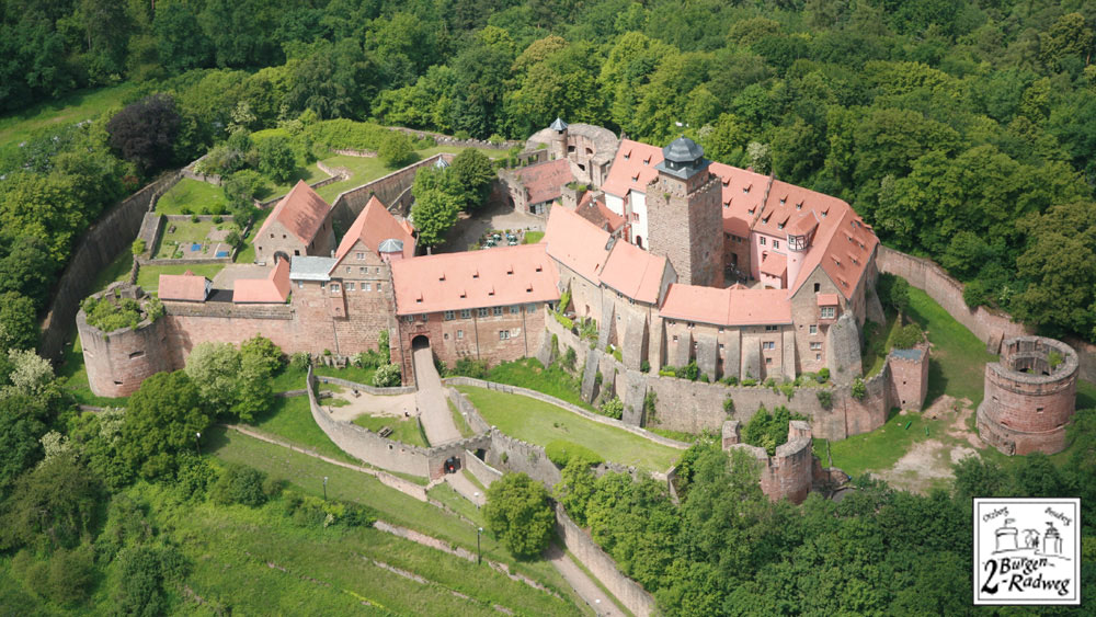 Der 16 km lange 2-Burgen-Radweg verbindet zwei imposante Burgenanlagen im Odenwald. Durch idyllische Waldgebiete und das Tal zwischen den Groß-Umstädter Stadtteilen Heubach und Wiebelsbach gelangt man von der hoch über dem Mümlingtal gelegenen Burg Breuberg zur weithin sichtbaren Veste Otzberg. Die Burg Breuberg zählt zu den besterhaltenen Burgen Deutschlands. Hier finden sich heute ein Museum, eine Gaststätte und eine moderne Jugendherberge, die sich zum begehrten Tagungsort entwickelt hat.