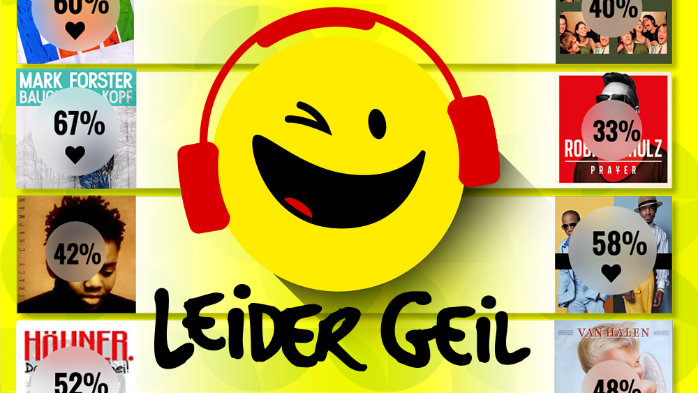 Einzigartig in Deutschland ist unser Voting-Kanal FFH LEIDER GEIL. Hier sind die Hörer die Musikchefs. Aus einem großen Pool mit den besten Hits aller Zeiten treten immer zwei Titel gegeneinander an. Nur der mit den meisten Votes wird auch gespielt.
