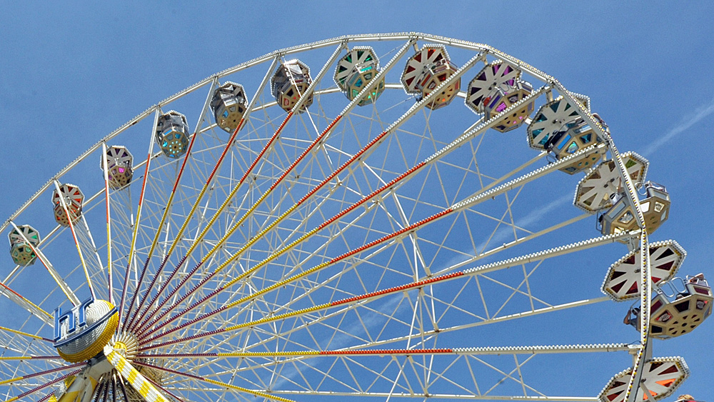 Länger Sonne hat man, wenn man gerade oben ist: Im Riesenrad auf dem Kuckucksmarkt in Eberbach. Heute ist der letzter Tag des beliebten Marktes und zum Abschluss gibt’s ab 20 Uhr ne dicke Mallorca-Party - und zwei Stunden später beschließt das schöne Feuerwerk den Markt für dieses Jahr.