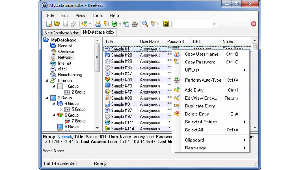 Zugegeben: Das Programm KeePass sieht nicht besonders attraktiv aus und braucht ein paar Minuten Einarbeitungszeit. Doch danach bietet es alle Funktionen, die man von einem Offline-Passwortmanager erwartet. Es verwahrt eure Daten sicher verschlüsselt auf der Festplatte und unterstützt euch bei der Erzeugung von Passwörtern.