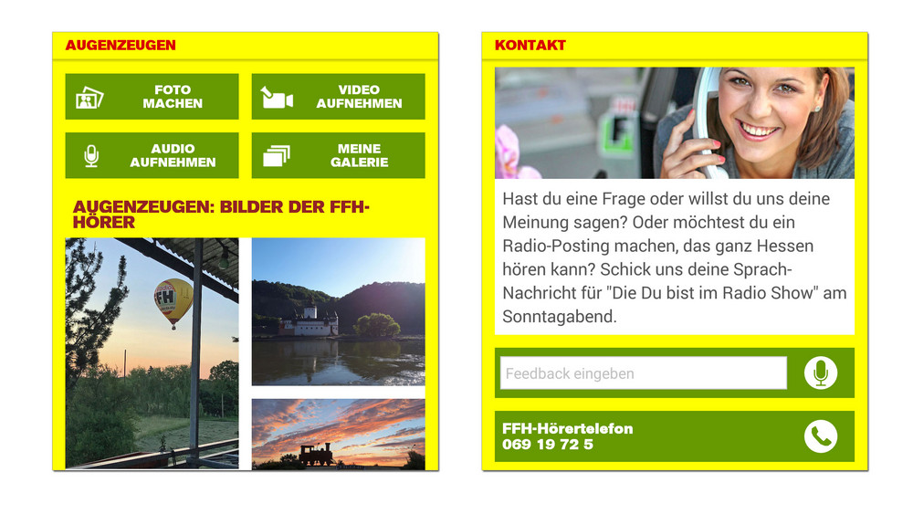 Auffällig ist vor allem das Layout: Es ist übersichtlicher geworden und ähnelt dem Design der FFH-Website. Zum Beispiel die Augenzeugen-Galerie mit den Bildern unserer Hörer. Du kannst nun durch alle Bilder scrollen und die Bilder antippen, die dich besonders interessieren. Sie füllen dann den ganzen Bildschirm aus und die Infos zum Bild werden sichtbar.