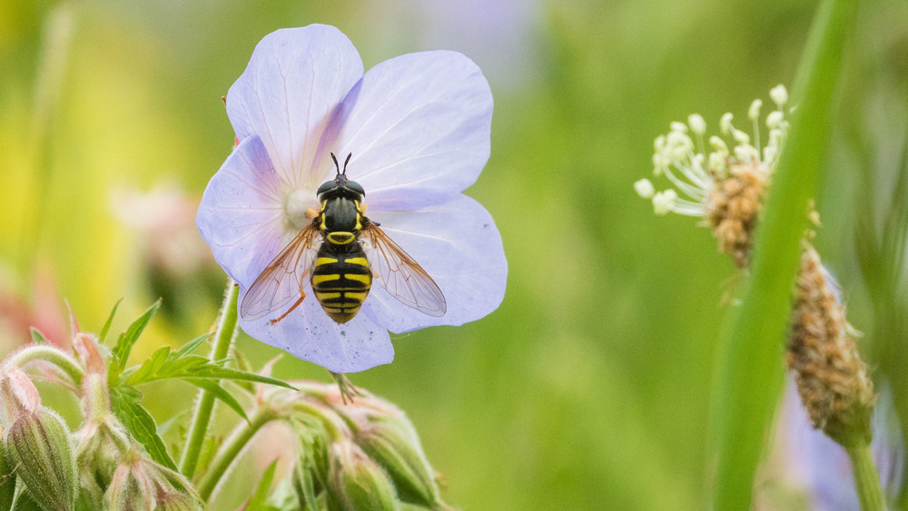 Übrigens: Draußen in der Natur sind auch fliegende Betrüger unterwegs. Die schwarz-gelb gestreiften Schwebefliegen sehen auf den ersten Blick ebenfalls wie Wespen aus und sorgen bei manchem Hessen völlig unnötig für Aufregung. Denn die kleinen Verkleidungskünstler sind völlig harmlos und können nicht stechen. Erkennen könnt ihr sie am einfachten an ihrem Flugverhalten. Während Wespen ruhelos herumschwirren und immer in der Bewegung sind, können Schwebefliegen in der Luft stehen bleiben (daher auch der Name). Wenn ihr also ein Wespenartiges Insekt seht, dass ruhig in der Luft steht, könnt ihr euch direkt entspannen.