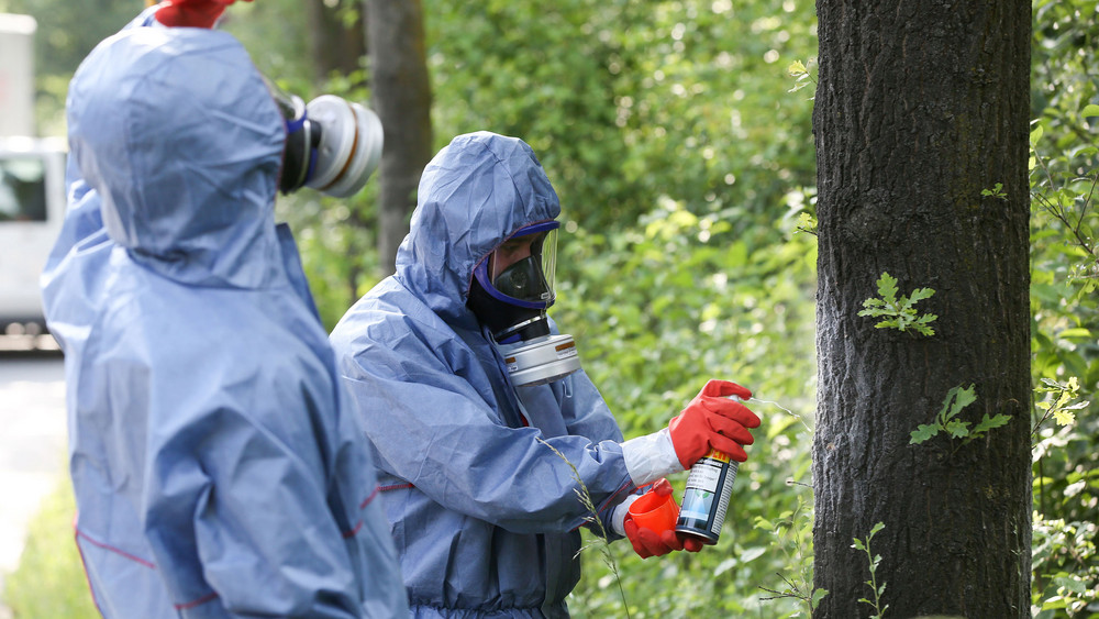 Habt ihr ein Nest an einem Baum im eigenen Garten, dann macht es unter keinen Umständen selbst weg. Ruft unbedingt den Kammerjäger, denn der kann den Schädling mit speziellem Gerät sicher entfernen.