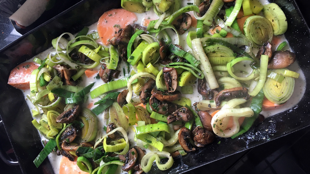 Pilz-Auflauf mit Süßkartoffeln und Lauch