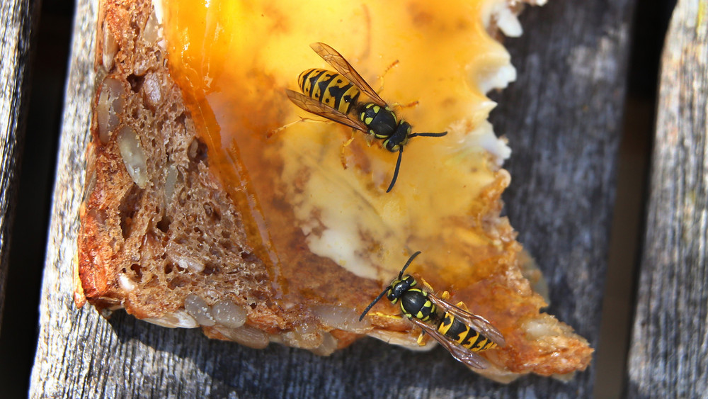 Auch wenn Wespen keinen guten Ruf haben: Von Grund auf aggressiv sind sie nicht. Genau wie Bienen reagieren sie erst energisch, wenn sie sich bedroht fühlen. Sollte euch eine Wespe also zu nah kommen, dann versucht nicht, sie mit hektischen Handbewegungen oder Anpusten wegzuscheuchen. Das nehmen Wespen als Bedrohung wahr und wehren sich. Wie ihr sicherlich schon häufig bemerkt habt, lieben Wespen alles, was schön süß ist. Zucker benötigen sie, um ihre Brut zu ernähren.