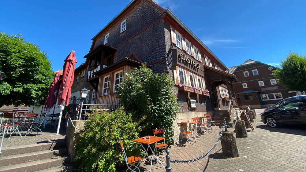 So beschaulich Poppenhausen in der Rhön auch ist, hier spielt eine echte Spuckgeschichte. Denn da, wo heute das schöne, große Gasthaus zum Stern steht am Marktplatz, da war früher eine Wasserburg. Im Jahr 1361 wurde sie im Auftrag der Fulderer Fürsten gebaut. Und der Bauherr hatte eine schwierige Aufgabe, denn er sollte dafür sorgen, dass sie unbezwingbar sein sollte. Wie stelle ich das bloß an? fragte er sich. Da erschien ihm der Teufel und bot ihm einen Pakt an. Die Wasserburg sollte unbezwingbar werden, wenn der Bauherr dafür ein kleines Kind in die Burg einmauert. Und der Bauherr ging den Pakt ein. Der Teufel hatte allerdings ein kleines Detail verschwiegen, nämlich dass der Pakt nur 99 Jahre lang gültig sein sollte. Die Wasserburg wurde also schließlich doch eingenommen. Und die Seele des Bauherrn, die soll heute noch in stürmischen Nächten am Marktplatz in Poppenhausen umherwandern, begleitet vom Mimmern eines kleinen Kindes.