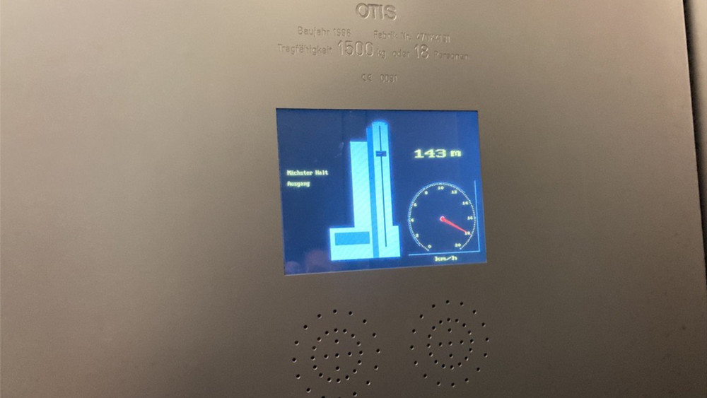 Wirklich rasant ist der Aufzug im Frankfurter Maintower unterwegs. Innerhalb von 45 Sekunden ist man auf 190 Metern Höhe - das entspricht einer Fahrtgeschwindigkeit von bis zu 20 km/h. Der Aufzug überbrückt 54 Etagen und man spart sich über 1000 Treppenstufen. Von der Aussichtsplattform oben auf dem Turm erwartet einen dann eine spektakuläre Aussicht auf Frankfurt und den Taunus. Ein Ticket kostet 9 Euro.