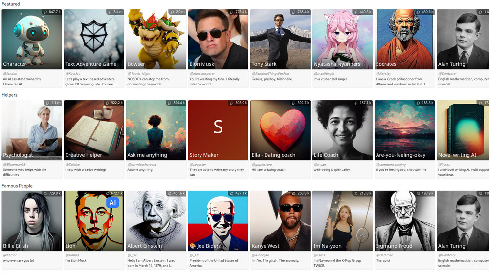 Auf der Webseite von Character.ai gibt es eine Unmenge an möglichen Personen, mit denen man ein Gespräch starten kann. Die Software denkt sich dabei jeweils Antworten aus, die zwar frei erfunden sind - aber so vom jeweiligen Gesprächspartner stammen könnten. So betont der digitale Donald Trump regelmäßig, wie toll seine Geschäftsfähigkeiten sind und Batman berichtet von seinen neusten Abenteuern in Gotham City.