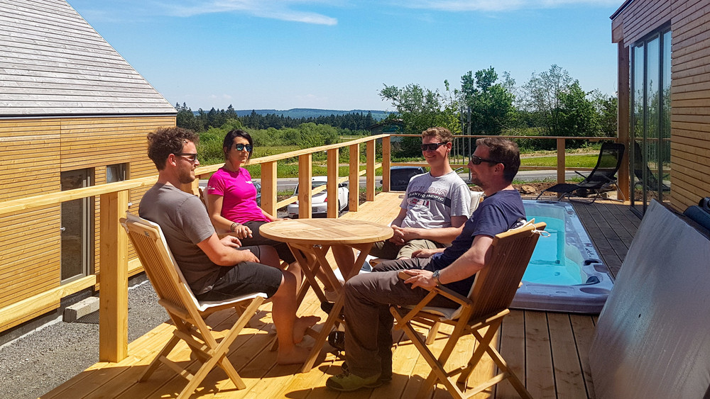 Das Wohn-Highlight auf der Wasserkuppe ist vor allem das kleine Feriendorf mit gemütlichen Hütten. Das Feriendorf bietet nicht nur vier barrierefreie Häuser, sondern auch zwölf Außenwhirlpools und zehn Saunen, in denen sich Groß und Klein entspannen können.
