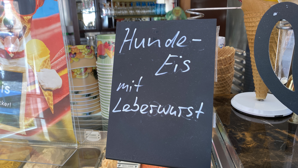 Bei der Hitze tut ein kaltes Eis richtig gut. Ist für uns Menschen natürlich kein Thema, wir können uns bei der nächsten Eisdiele einfach eine Kugel holen. Für Haustiere ist das Ganze nicht so einfach. Bis jetzt! In einigen hessischen Eiscafes gibt es nämlich Eis extra für Hunde im Angebot! Zum Beispiel hier: