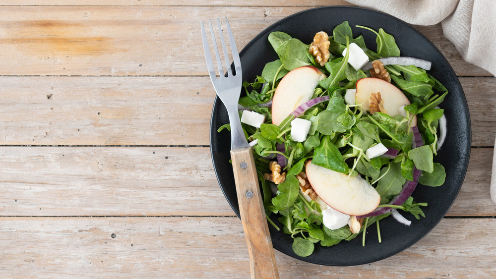 Salat waschen und klein schneiden, Apfel waschen und mit einem Sparschäler dünn abhobeln und unter den Salat mischen! Das Salz in den Apfelessig rühren, die restlichen Zutaten dazu geben - Dressing über den Salat! Wunderbar!