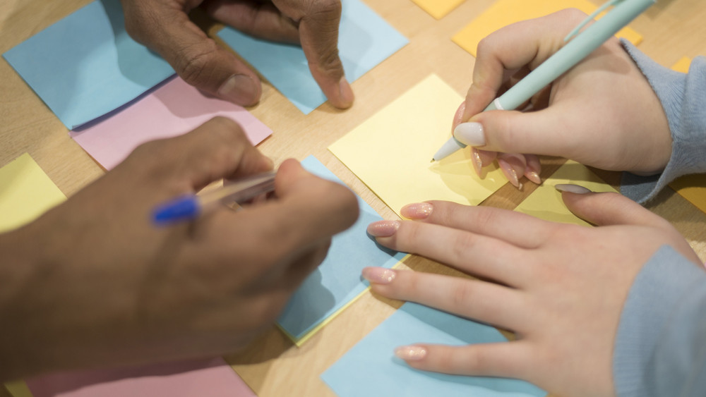 Und so geht's: Ihr setzt euch in einen Kreis – oder bei zwei Spielern gegenüber voneinander. Jeder sucht sich eine Person aus den anwesenden Mitspielern raus, die er zeichnen möchte – und schreibt deren Namen auf euren Zettel. Ihr legt los, nach einer Minute tauscht ihr euer Werk mit jemandem, den ihr nicht zeichnet. Dann malt ihr an dem getauschten Portrait weiter.