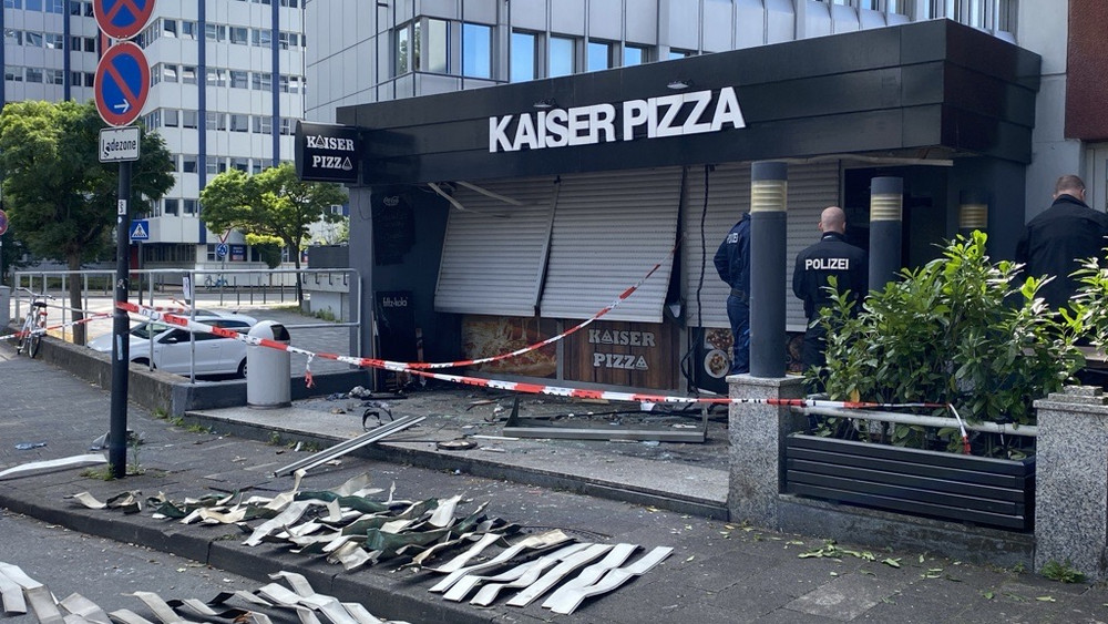 Eine Explosion reißt die Anwohner im Stadtteil Niederrad aus dem Schlaf. An einem Restaurant entsteht erheblicher Sachschaden, verletzt wird niemand. Die Polizei ermittelt wegen einer vorsätzlich herbeigeführten Sprengstoffexplosion.