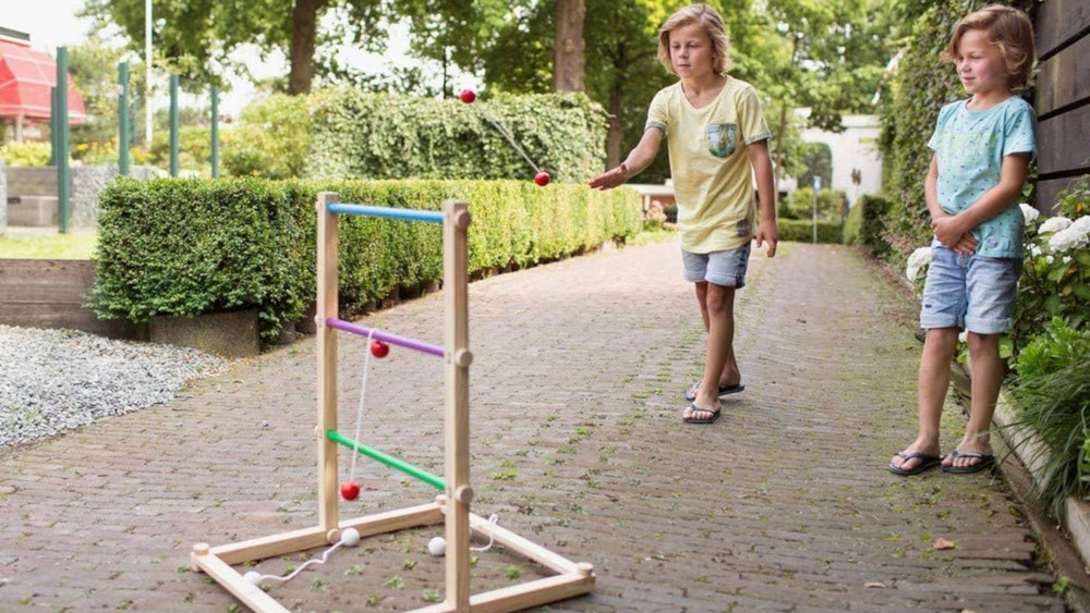 Leitergolf hat in letzten Jahren Kultstatus erreicht. Es ist ganz einfach zu verstehen und zu spielen, egal ob für Groß oder Klein. Es verbindet Geschicklichkeit, Glück und verrückte Spielsituationen. Ziel des Spieles ist ein Bola (ein Seil mit je einer Kugel am Ende) auf eine der drei Sprossen der Leiter zu werfen. Je nach Höhe gibt es Punkte. Hier geht´s zu Amazon.
