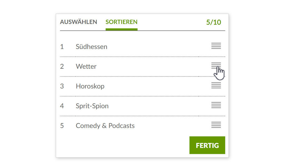 Wähle bis zu zehn Rubriken und tippe dann auf den Reiter "Sortieren".