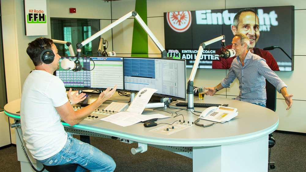 Gebräunte Haut, Jeans, ein lockeres gemustertes Hemd – entspannt und gut gelaunt. So kommt Adi Hütter zu Daniel Fischer ins FFH-Sendestudio. Von Anspannung vor der erste schwere Prüfung im Supercup gegen den FC Bayern München am Sonntag merkt man wenig. Kein Wunder, dass gerade alle Frankfurter Fußball-Fans auf ihn schauen und wissen wollen: Was ist das eigentlich für ein Typ?