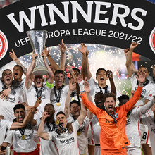 Der Moment des Erfolgs: die Eintracht-Helden bejubeln den Sieg in der Europa League.