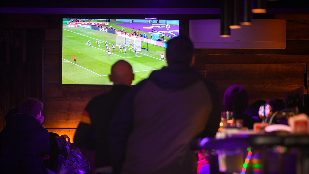 Wer gerne an die frische Luft gucken möchte, der geht zum Bayerischen Biergarten in Darmstadt – hier dürfen bis zu 1.500 Zuschauer kommen. Die Maß Bier kostet knapp 10 Euro. Und die Bratwurst 5,50 Euro. Der Eintritt ist kostenlos.