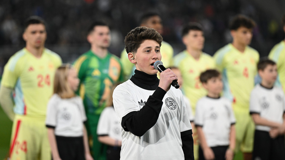 Vor dem Länderspiel der deutschen U21-Nationalmannschaft gegen Spanien hat ein 13-Jähriger das Publikum verzückt. Das "The Voice Kids"-Talent Alwin sang im Stadion in Darmstadt die deutsche Nationalhymne. Er sei ein bisschen nervös, aber es sei auch eine große Chance, sagte das Talent zuvor bei Sat.1. "Einmal die deutsche Nationalhymne live im Stadion zu singen und das bei einem Länderspiel der deutschen Nationalmannschaft, ist einfach eine große Sache. Ich freue mich sehr, dass Alwin aus meinem #VoiceKids-Team diesen einmaligen Moment erleben darf", sagte Sänger und Songwriter Wincent Weiss im Vorfeld.