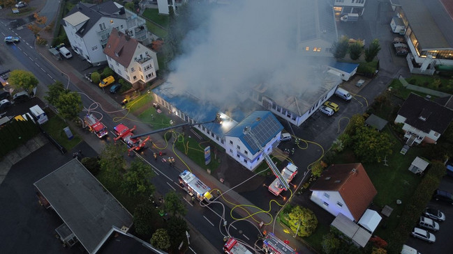 Seitdem laufe der Feuerwehreinsatz an dem Gebäudekomplex aus Halle und Sanitätsgeschäft. Personen seien nicht in Gefahr. Schadenshöhe und Brandursache waren zunächst unklar.