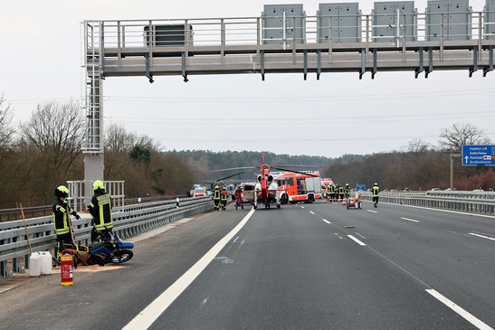 Notfälle - Motorradfahrer lebensgefährlich verletzt – A3 gesperrt
