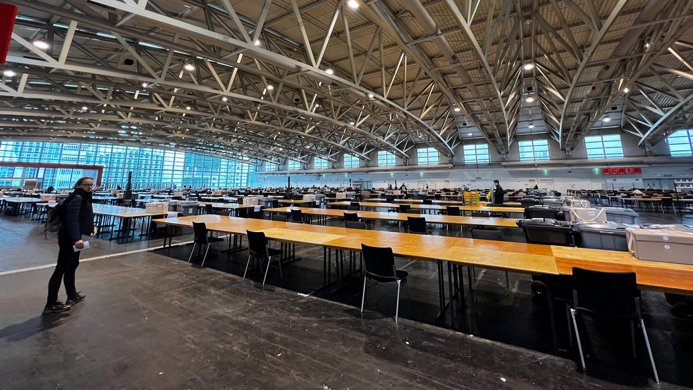 Allein in Frankfurt haben 140.000 Menschen Briefwahl beantragt, hat Wahlamtsleiter Stefan Köster unserem Reporter gesagt. Er geht davon aus, dass das um die 40 Prozent der Wählenden sind. Man fange bereits fast ein Dreivierteljahr vor dem Wahltag an mit der Organisation. Für die Auszählung in der Messehalle finden sich laut Köster insgesamt 200 Briefwahlvorstände ein mit 1.500 Personen, die ihr Wahlehrenamt bei der Briefwahl ausüben.