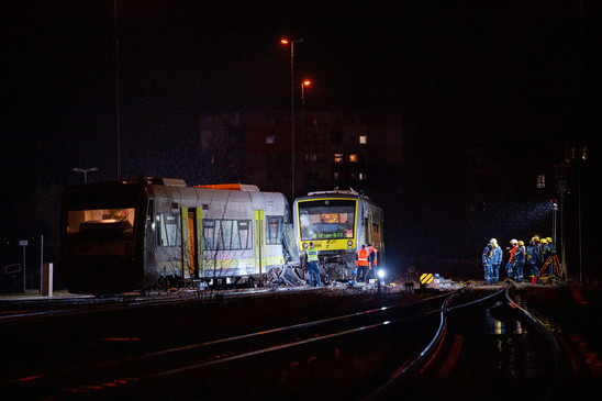 Nach ersten Informationen kollidierten zwei Agilis-Züge. Ein Zug hatte demnach Lokführer und 13 Fahrgäste an Bord und wollte in den Bahnhof einfahren, der zweite war ohne Fahrgäste auf einer Rangierfahrt zum Betanken unterwegs. Die Polizei untersucht nun laut Sprecher, ob der Lokführer des rangierenden Zugs seinen einfahrenden Kollegen übersehen haben könnte.